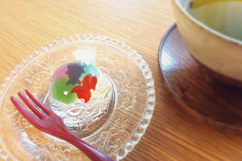 Este dulce también es representativo a típica imagen veraniega «Kingyo Sukui 金魚すくい» que es un juego de pesca de peces dorados en fiesta de verano «Omatsuri お祭り». Los pecesillos atrapados en gelatina fría son refrescantes a la vista y también a paladar. Son perfecto para el verano.