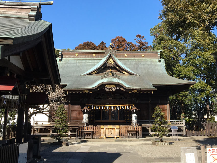 El Santuario principal construido en 1738, es una arquitectura más antigua de Tachikawa y uno de bienes culturales designados por la ciudad. Sobre todo la escultura de Dragón tallado en madera es impresionante, vale la pena verla.